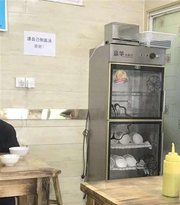 市民李先生向記者反映,他發(fā)現(xiàn)一些面館、小吃店等擺放的消毒柜形同虛設(shè),“從消毒碗柜拿出來(lái)的餐具經(jīng)常濕漉漉的,還有些消毒柜根本沒(méi)放餐具,成了雜物柜?!?月29日,記者來(lái)到城西區(qū)微波巷一家小吃店,只見(jiàn)店內(nèi)的消毒柜擺放在顯眼處,打開(kāi)一看,里面擺滿了碗,碗下面墊著一層白色的毛巾,旁邊的電線耷拉在一旁,并沒(méi)有通電。當(dāng)記者問(wèn)及為何沒(méi)有通電時(shí),服務(wù)員說(shuō)因?yàn)閯偨o自己手機(jī)充電,所以拔下了消毒柜的電源。隨后,記者又來(lái)到夏都大街一家火鍋店,店內(nèi)的消毒柜內(nèi)雖然擺放著碗筷,但同樣沒(méi)有插上電源。一名女服務(wù)員說(shuō):“忘記插電了?!庇浾唠S后又走訪了海湖新區(qū)部分中小餐館,發(fā)現(xiàn)大多數(shù)餐館配備了消毒柜,但一部分呈斷電狀態(tài),有的甚至成了雜物柜,根本沒(méi)有起到消毒殺菌作用。
