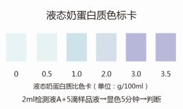 1.3:取2ml蛋白質檢測試劑于比色管中,加入5滴樣品液,振搖混勻5分鐘后,觀察顏色變化并與標準比色卡對比。