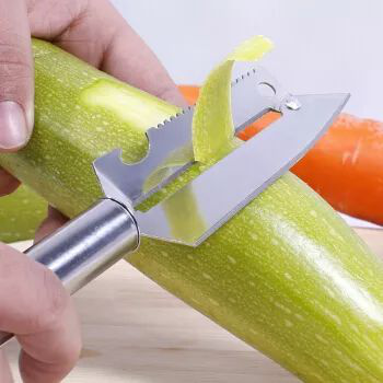 蔬菜瓜果表面農(nóng)藥量相對較多,所以削去皮是一種較好的去除殘留農(nóng)藥的方法??捎糜谔O果、梨、獼猴桃、黃瓜、胡蘿卜、冬瓜、南瓜、西葫蘆、茄子、蘿卜等。處理時要防止去過皮的蔬菜瓜果混放,再次污染。