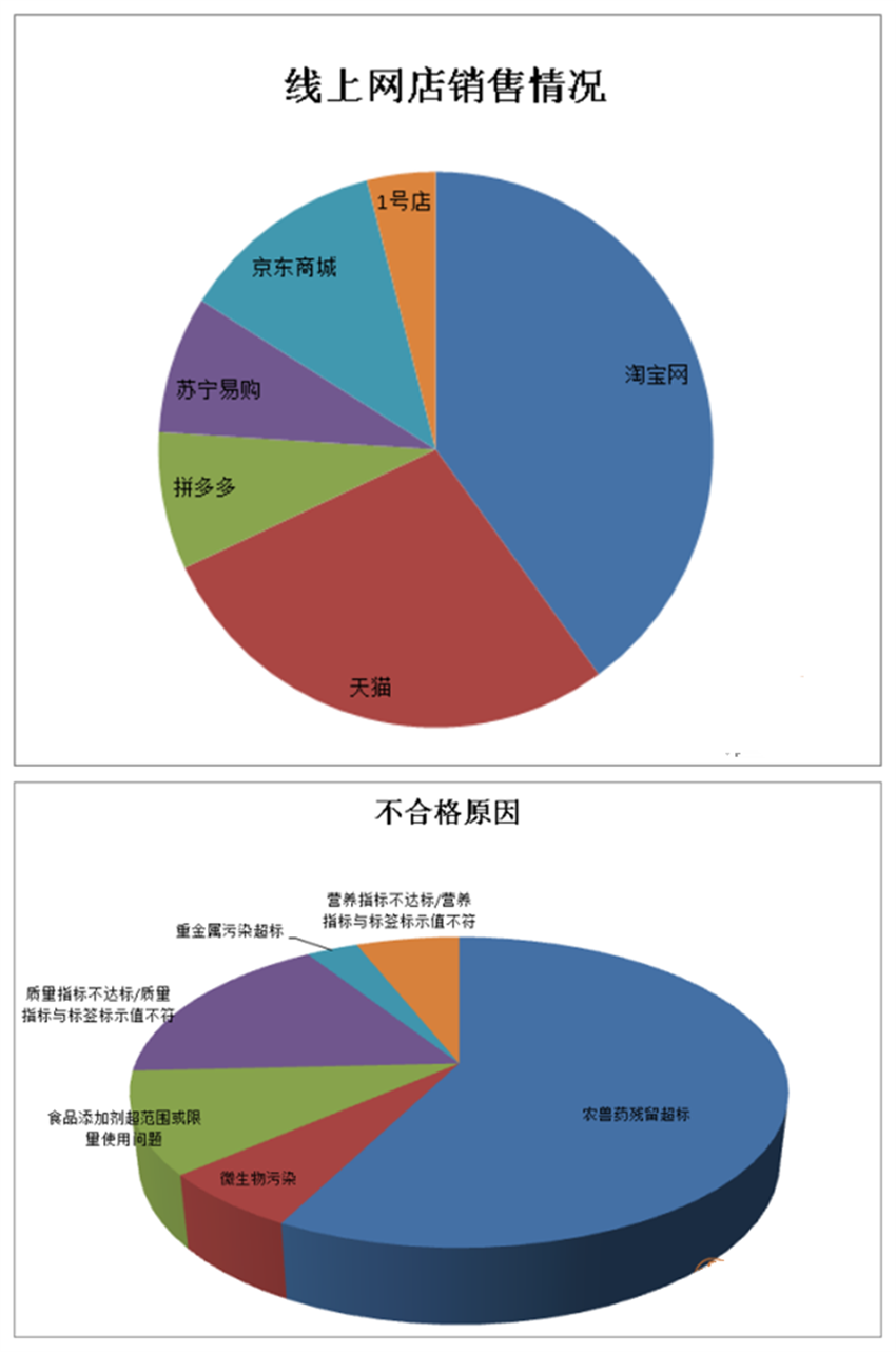 另外,不合格食品中,有25批次食品來自線上網店,其中淘寶網有10批次,天貓有7批次,拼多多有2批次,蘇寧易購有2批次,京東商城有3批次,1號店有1批次。