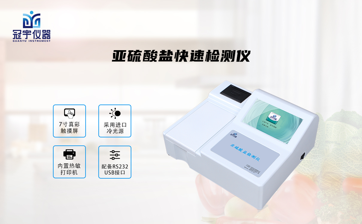 冠宇儀器亞硫酸鹽快速檢測儀能夠快速檢測竹筍、蜜餞涼果、餅干、粉絲、白糖、淀粉、陳糧、米粉、烤魚片、魷魚絲、蟹肉、魚糜、魚干、黃花菜、果脯、巧克力、葡萄酒、啤酒及麥芽飲料等中的亞硫酸鹽含量。適用于食品監(jiān)測中心、食品生產(chǎn)加工、食品加工貿(mào)易、食品生產(chǎn)廠家自查、工商質(zhì)監(jiān)部門用于市場快速篩查等。