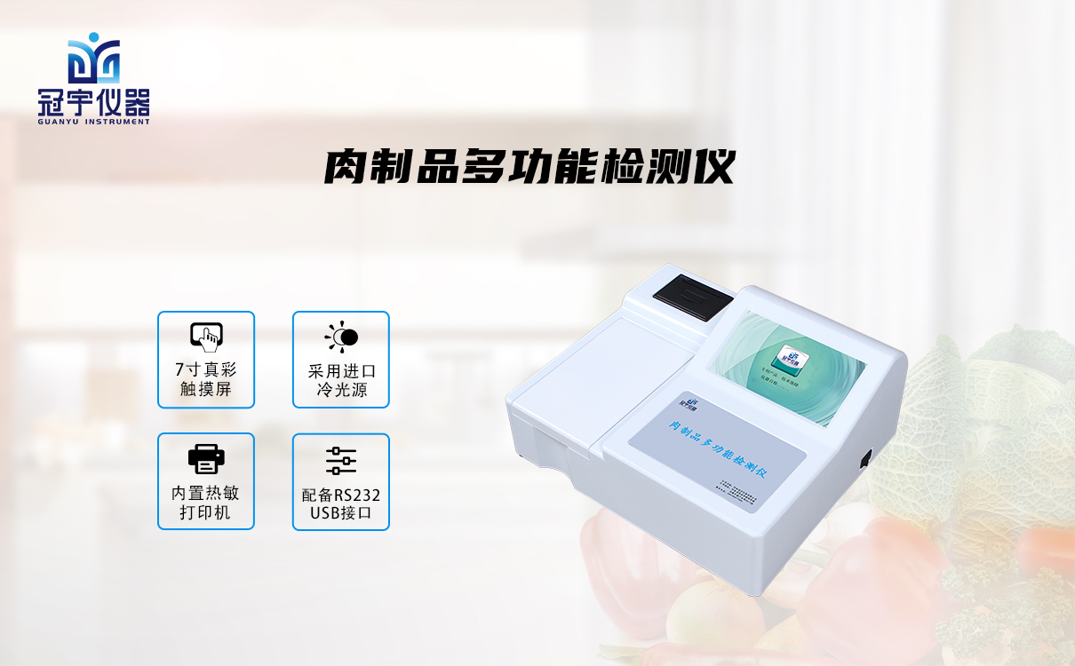 四是檢,通過物理特性辨別不吃來是否變質的時候,就要運用到專用的肉制品安全檢測儀針對肉制品的相應安全指標進行檢測和鑒定。冠宇儀器肉制品多功能檢測儀GY-DS1007能夠快過氧化值,硼砂,,病害肉(細菌毒素、揮發性鹽基總氮、組胺)山梨酸,磷酸鹽,焦磷酸鹽,焦磷酸二氫鈉,六偏磷酸鹽,三聚磷酸鹽,肉制品酸價,脂肪,苯并芘等的含量。準確定量判定肉制品是否安全。