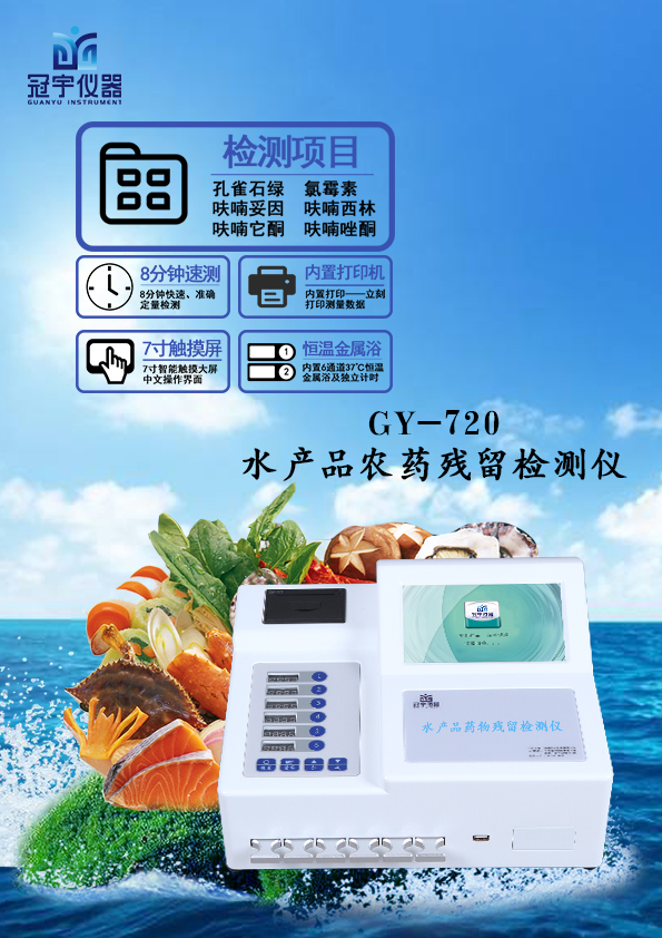 河南冠宇儀器有限公司專業生產呋喃西林檢測儀應用競爭抑制免疫層析的原理,通過檢測線熒光定量卡中的熒光強弱程度,定量分析待檢樣品中呋喃西林殘留含量。適用于水產監測中心、水產飼料生產加工、水產食品加工貿易、水產養殖戶自查、工商質監部門用于市場快速篩查等。