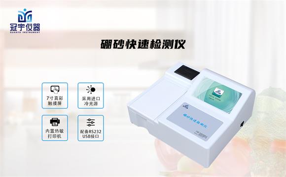 冠宇儀器硼砂檢測儀GY-1056能夠快速檢測面條、腐竹、米粉、涼粉、涼皮、面條、餃子皮、餛飩、粽子、肉丸、涼皮、肉制品、乳與乳制品、醬油、人造奶油、葡萄酒等食品中的硼砂含量。