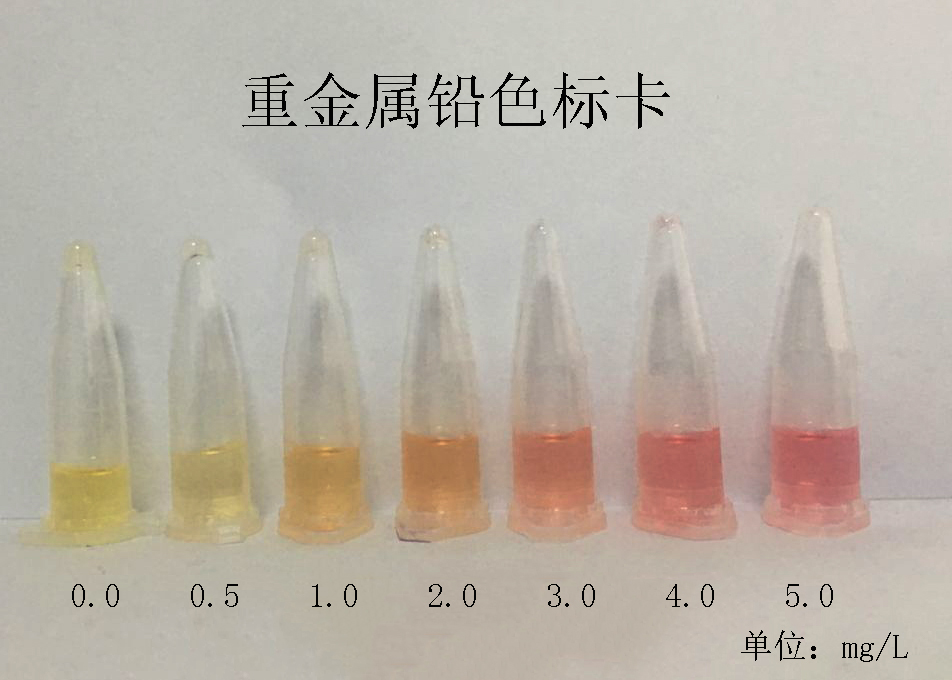 2.2:若檢測管顏色為深黃色,說明不含有鉛。鉛的含量與比色卡進行對照。空白對照管為試劑本色或無色。(見色卡)